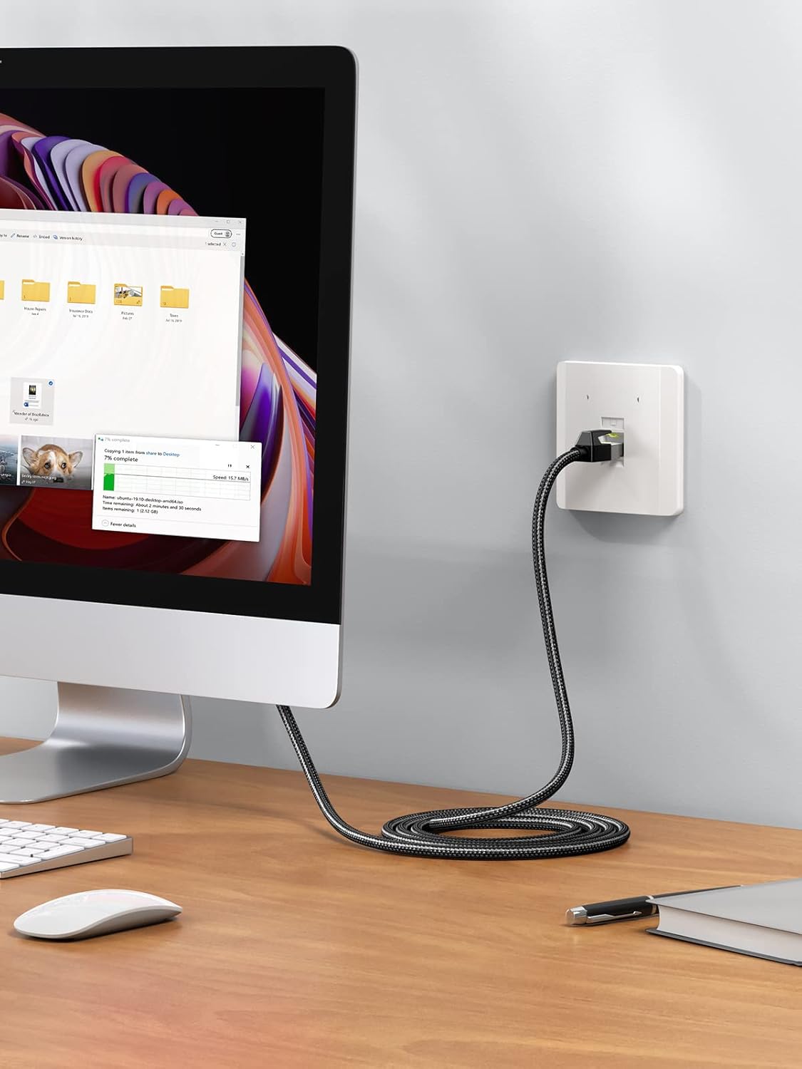 Durabilidade aprimorada com trançado: cabo ethernet UGREEN Cat 7 envolto em cordão trançado de algodão de qualidade, o que torna o cabo LAN mais forte e durável. O teste prova que este cabo de internet pode ser dobrado pelo menos 10.000 vezes sem quebrar, muito adequado para uso a longo prazo.